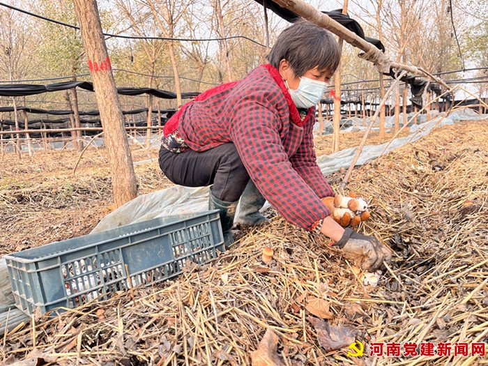 河南党建网讯( 李万全通讯员柳真真 唐泉锦)12月8日,走进宝丰县肖旗乡林下种植基地,一种菌菇独有的清香扑面而来,一排排铺着秸秆的垄面上,朵朵“伞盖”鲜嫩肥厚,样子十分喜人,村民们正忙着采摘,不一会儿一框框新鲜圆润的大球盖菇就摆在眼前。