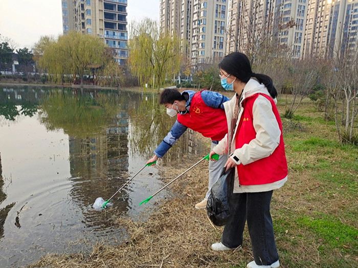 当天,在宝丰县龙兴湖公园河畔,“河小青”们身穿红马甲,手拿工具夹,对河岸边、堤防平台上的杂草、落叶、生活垃圾以及绿化带中的塑料杂物等进行地毯式清扫,并对垃圾进行分类处理,以实际行动争当“河小青”环保志愿者,传播绿色生态理念。