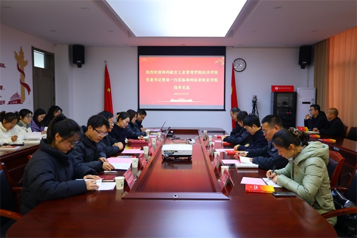 为深入学习贯彻党的二十大和党的二十届四中全会精神,创新党建工作载体,2025年11月17日,郑州航空工业管理学院经济学院教工第一党支部与郑州体育职业学院第一党支部联合开展了以“弘扬英模精神、践行初心使命”为主题的支部共建暨主题党日活动。郑州体育职业学院党委书记赵昕,党委副书记、纪委书记王晓慧,第一党支部书记黄文龙等党员同志,经济学院党委书记贺琼、教工第一党支部书记王岩、宣传委员张艺璇及党员代表杨光、程俊共同参与活动。本次主题党日活动通过现场观摩、座谈交流与文化参访相结合的方式开展,旨在推动党建与业务深度融合,凝聚育人合力。