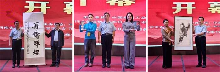 会上,为庆贺河南省陶瓷行业协会发展40周年成果展硕果累累,平顶山市文旅局、平顶山陶瓷发展促进中心赠书法“再铸辉煌”一幅;宝丰中汝廷怀窑李廷怀捐献“双奥尊”一对;宝丰大博瓷画捐献“悲鸿马”瓷画一幅,祝福河南省陶瓷玻璃行业管理协会未来再创新辉煌。