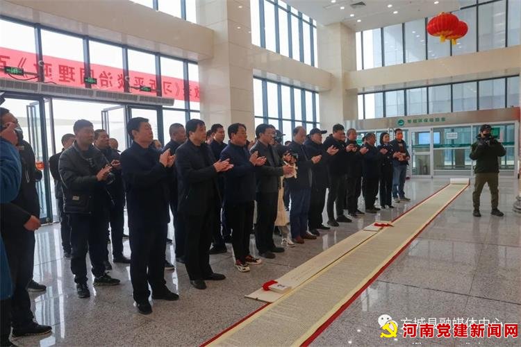 百米书法长卷展仪式由方城县政府党组成员、副县长、县公安局党委书记、局长曲红军主持,县委常委、政法委书记张宏伟,县委常委、宣传部部长兼副县长岳太斌出席仪式,县委宣传部、县委政法委、县文广旅局、县融媒体中心、县文联等部门负责同志和县书法爱好者代表参加仪式。
