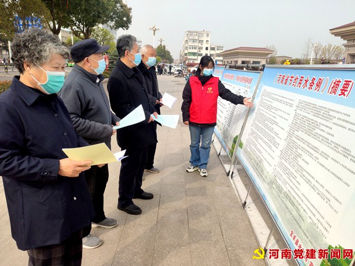 “大爷,这是水法宣传单,一定要记得看看呀”在场宣传的工作人员看到迎面而来的行人赶紧打招呼。