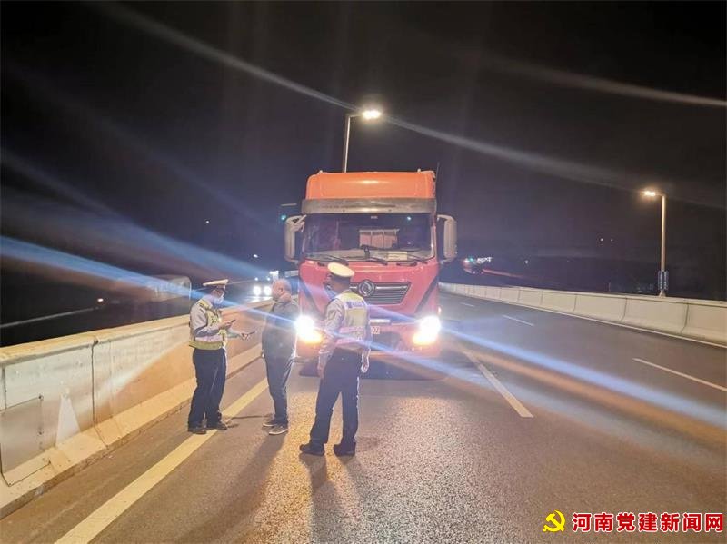 为预防和遏制严重交通事故发生,保护市民夜间行车安全。郑州市交警二支队加大夜间巡逻防控力度,特别是辖区快速路、高架路、城乡接合部主干道等夜间交通违法多发的偏远路段增加警力,对夜间违法现象进行查处。4月14日凌晨,三辆严重违法大货车相继被民警查处。