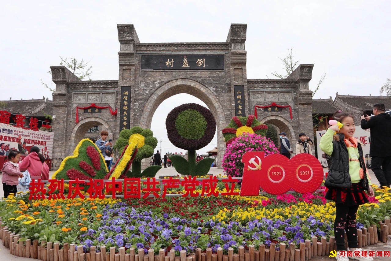 “网红打卡地”倒盏村精心修建的庆祝建党100周年花坛吸引游人驻足