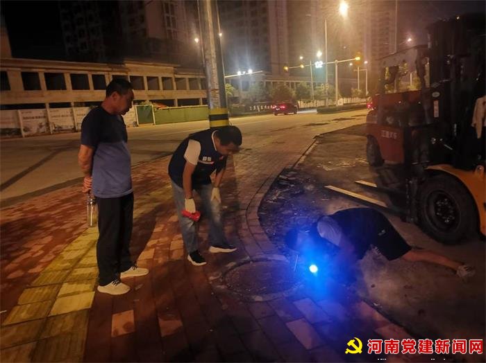 9月13日晚10时30分许,夜深人静,灯火阑珊。固始县成功大道与大别山路交叉口,从一辆带有“固始供水”字样的工具车上跳下四个人,经过短暂的交流后,他们便立即投入工作,开始沿线忙活起来。他们分工明确:一位较为年长者负责“带路”,沿路指指点点;一位背着工具的,随着那位年长者的指点探测着什么;一位中年男子则忙前忙后,协助“探测者”;另一位则是司机,负责给他们提供通勤保障服务。