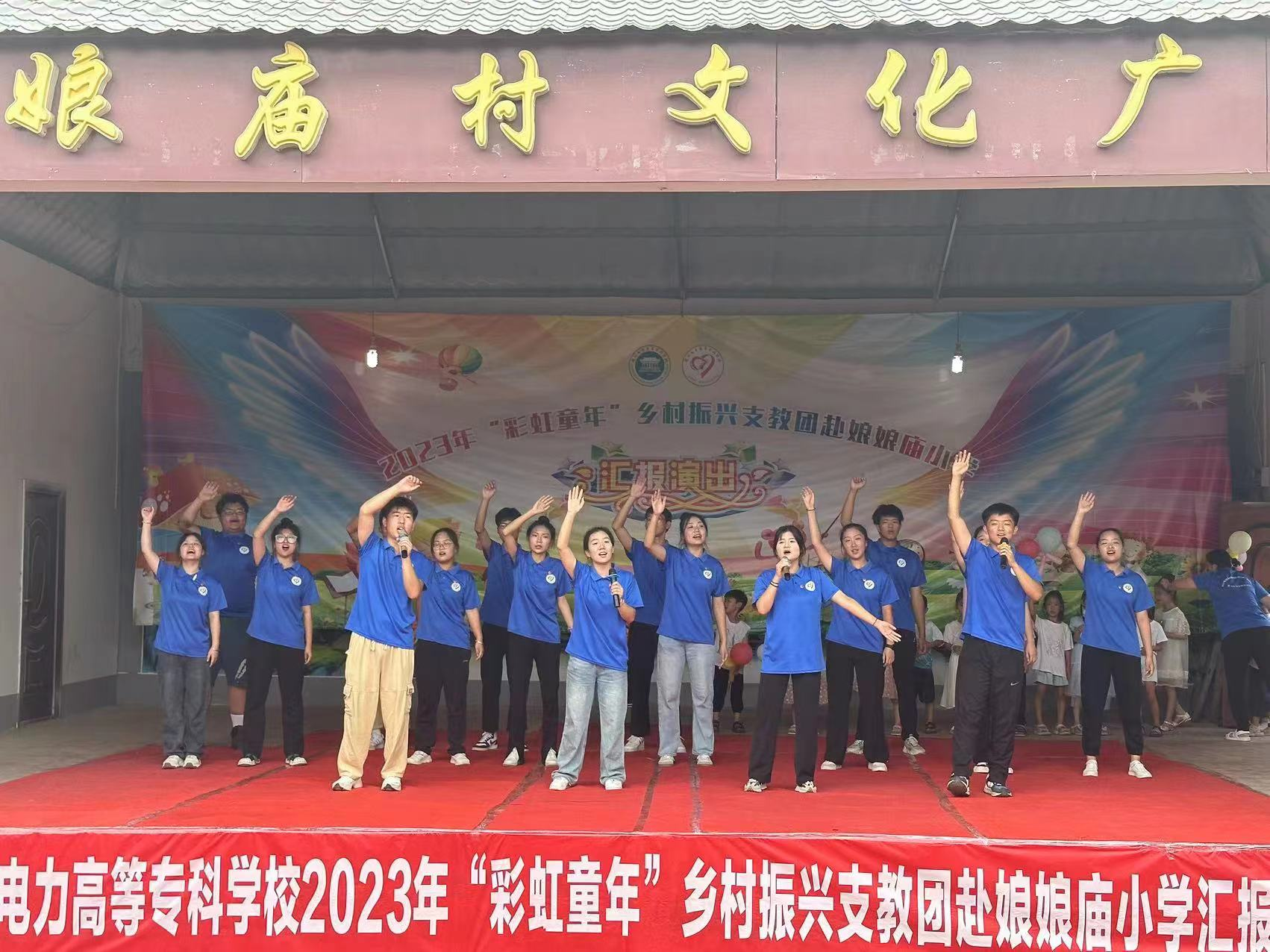 河南党建 2023年7月13日上午,郑州电力高等专科学校“彩虹童年”乡村振兴支教团赴娘娘庙村汇报演出活动在该村文化广场举行,南阳市委宣传部二级调研员马蔼玲、郑州电力高等专科学校党委副书记副校长宗万伟、南召县委宣传部副部长廉成、南召县皇后乡人大主席凌峰、国网南阳供电公司党委宣传部副主仼孙冬丽等校地企领导出席活动,郑州电力高等专科学校21名支教团师生、参加“彩虹童年”1一5年级150余名学生,以及当地群众家长500余人观看演出。汇报演出在歌伴舞《勇气大爆发》中拉开序幕,依次表演了12个形式多样、生动活泼、充满正能量的节目,最后在支教团队员大合唱《仰望星空》中节目圆满结束。汇报演出前,南阳市委宣传部二级调研员马蔼玲、郑州电力高等专利学校党委副书记副校长宗万伟先后做了发言。