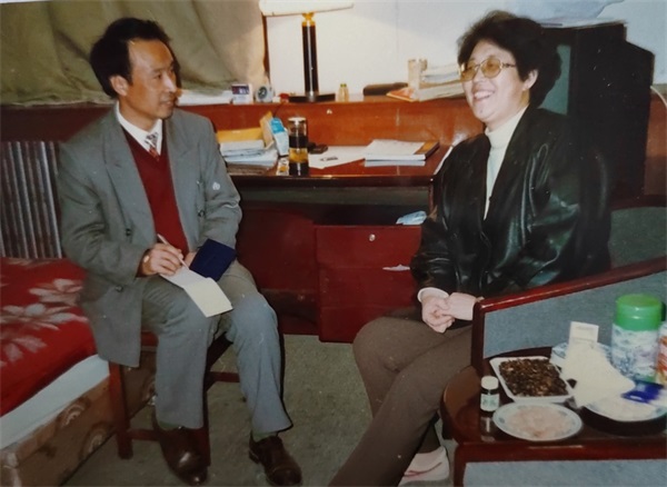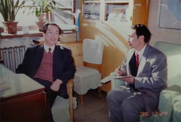 时任中央人民广播电台台长安景林(左),不仅为蒙标成题了词,而且为进一步宣扬蒙标成,向作者谈了指导性意见