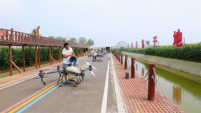 8月16日,在河南叶县仙台镇高标准农田核心示范区,连片的玉米植株挺拔整齐,长势喜人。伴随着螺旋桨的轰鸣声,满载农药的植保无人机“嗡嗡”地飞向上空,沿着玉米地块匀速飞行,细密的农药呈雾状均匀地喷洒在田野里,短短几分钟,就完成了数亩玉米的飞防作业。