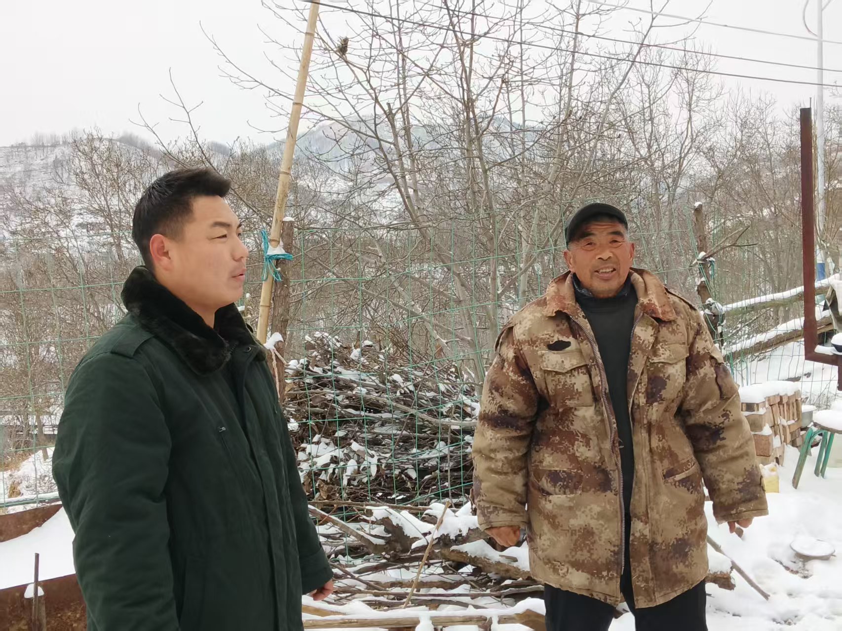 李河龙回答:“这几天天冷雪大,来看看山里的几位群众有没有困难。”