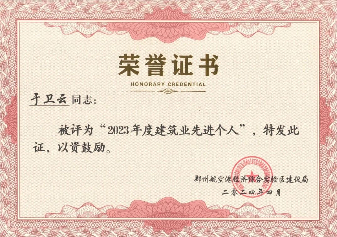 据介绍,郑州航空港经济综合实验区建设局经过严格的评审程序,河南世东建设工程有限公司被评为“2023年度建筑施工先进企业”,于卫云、任珂同志被评为“2023年度建筑业先进个人”。此殊荣充分彰显了河南世东建设工程有限公司在建筑领域长期以来追求卓越品质,不断提升项目管理水平和施工的专业水准,同时为建筑行业的繁荣与发展做出了积极贡献。未来,他们将继续秉承初心,砥砺前行,为建筑行业的持续发展和社会的繁荣进步贡献更多的力量!