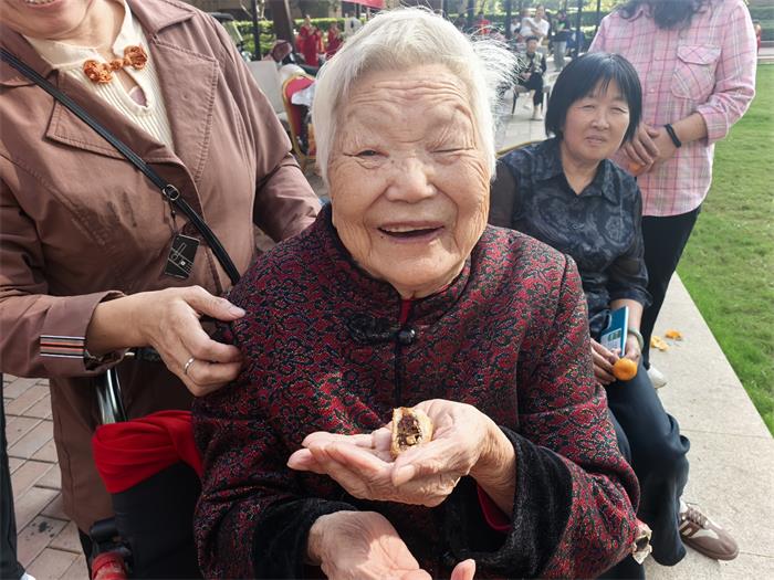 演出结束,温馨继续。社区专门为老人们准备的茶话会热闹开场。桌上月饼飘香、糕点精致,老人们围坐畅谈,工作人员贴心问候,聊家常、送祝福,现场宛如一个温暖的大家庭。“平时孩子不在身边,社区却让我们感受到了团圆的温度。”一位阿姨笑着说。