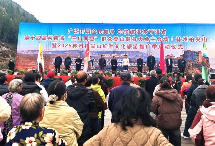 10月25日上午,第十四届河南省“三山同登”群众登山健身大会主会场(林州柏尖山)暨2025林州柏尖山红叶文化旅游推广季启动仪式,在安阳林州柏尖山景区盛大举行,近2000名参与者共同开启秋日登山健身之旅。