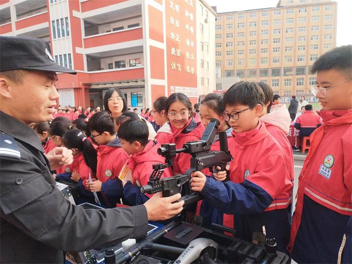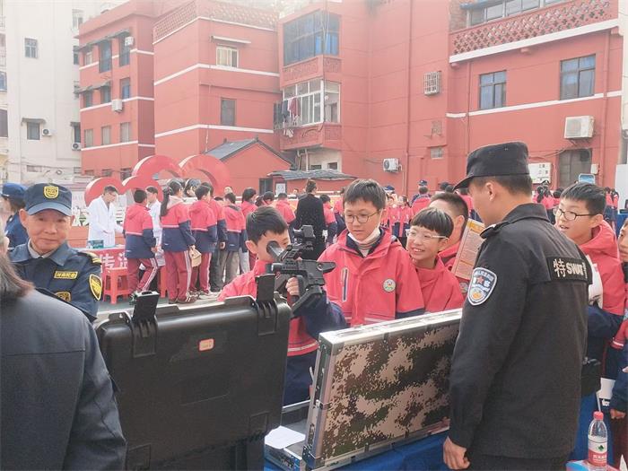 市公安局特巡警支队的器械展览区更成了“人气打卡点”,平日里难得一见的无人机、拐弯枪架、穿墙雷达、便携式催泪驱散器、微光观察镜,以及体型威武的防爆车整齐排列,瞬间勾起了孩子们的好奇心。