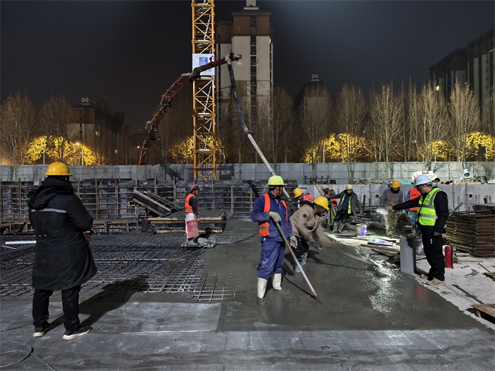 严寒之下,承诺需要用最严谨的技术来兑现。在安阳小南海项目,一句“冬季施工,养护就是命”道出了质量管控的核心。项目团队严格执行冬季施工规范,采用早强型复合防冻剂,并对拌合水与骨料进行加热,严控入模温度。浇筑后,立即覆盖“岩棉被+塑料薄膜”进行多层蓄热养护,技术员每隔4小时监测一次混凝土“体温”,确保强度在低温下正常增长。