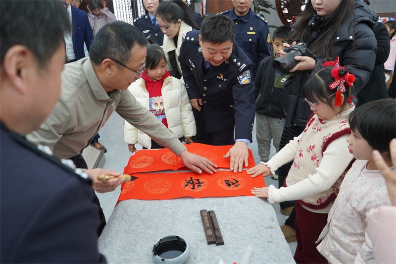 活动尾声,河南交投集团信阳分公司宣传部门负责人夏炎现场挥毫题字,为党建联建发展和公安队伍送上了真挚的节日祝福。随后,全体参会人员合影留念,将这一意义非凡、暖意浓浓的时刻永久定格。
