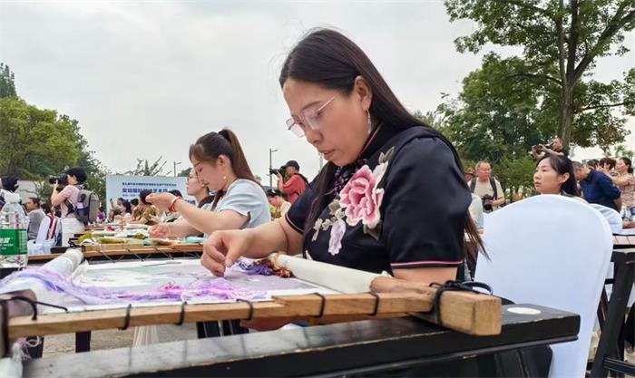 开封宋绣非遗传承人魏冬梅现场秀活。