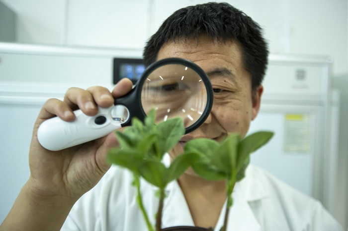 2026年3月17日下午,河南安阳,安阳工学院生物与食品工程学院有害生物防治实验室,张元臣副教授正在观察昆虫生长情况。