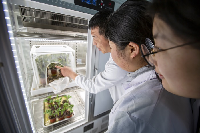 2026年3月17日下午,河南安阳,安阳工学院生物与食品工程学院有害生物防治实验室,张元臣副教授带领学生正在观察恒温培育箱内昆虫生长情况。