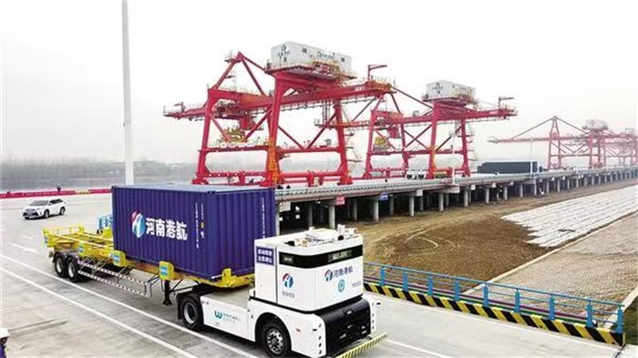 硬件能级的全面升级,让周口港重塑了中原内河港口的新标杆。在这里,智能化程度达到省内领先水平,中心作业区作为河南省首个实现规模化全流程自动化作业的内河集装箱码头,配备了远程操控双小车集装箱岸桥、双悬臂自动化轨道式龙门起重机、北斗高精度定位无人驾驶智能集卡(IGV)等先进装备,智能码头操作系统(TOS)与设备控制系统(ECS)无缝集成,5G专网与工业物联网全域覆盖,实现了从船舶配载、装卸船、水平运输到堆场收发的全流程无人化、自动化闭环作业,作业效率较传统模式提升30%以上,保障24小时全天候、高精度作业。信息化系统的优化升级,则构建起以数据驱动、全景可视、智能协同为核心的信息化中枢,通过数字孪生技术1:1复刻港区三维动态模型,创新应用“港-航-闸一体化联合智能调度平台”,打破信息壁垒,实现船舶“云端预报、智能排序、远程调度、顺畅过闸”,平均车船在港停留时间压缩至4小时以内,大幅提升了航道通航效率与船舶周转率。配套功能的不断完善,让周口港超越了传统装卸服务的局限,打造集口岸通关、多式联运、供应链服务于一体的综合物流平台,海关监管查验区、公用型保税仓、保税物流中心(B型)等设施齐全,“抵港直装”“船边直提”等新型通关模式全面推行,“一单制”铁水、公水多式联运深度发展,为企业提供了“一次委托、全程负责”的全程物流解决方案。